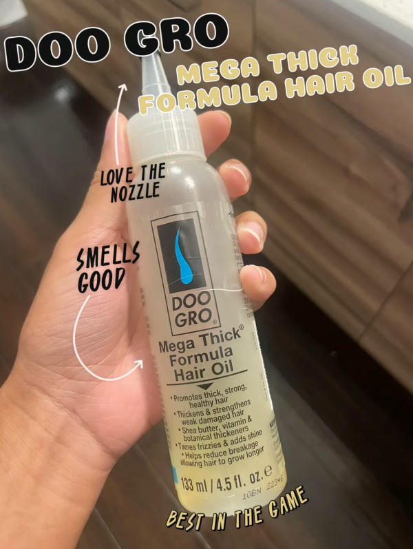 Doo Gro is a lightweight oil that stimulates the scalp and supports hair growth. It’s great for reducing breakage and improving overall scalp health.