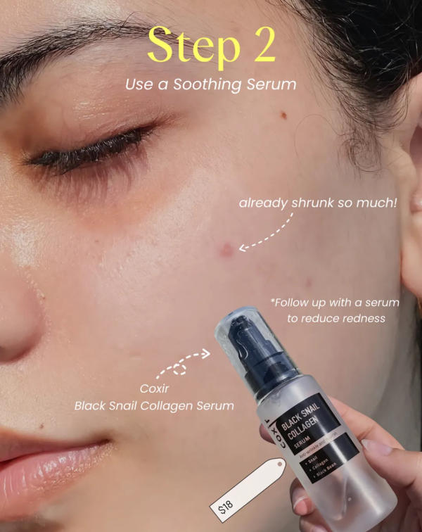 After treating the breakout, calming the skin is key. Products rich in snail secretion filtrate are especially helpful, as they hydrate, repair, and minimize redness without irritating sensitive skin. This step makes a big difference if you’re going makeup-free or want your foundation to sit smoothly over the area.