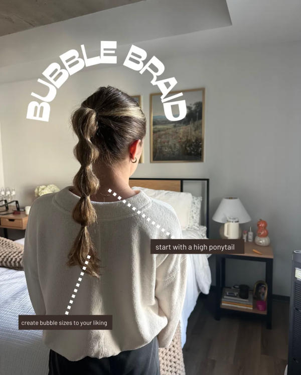 Playful yet polished, the bubble braid instantly elevates a ponytail. It works beautifully whether you choose a high ponytail for a bolder effect or a low ponytail for a more relaxed vibe. Adding hair ties along the length of the ponytail creates “bubbles” that give the style volume and texture, making it both fun and unique. It’s a great way to turn a simple pony into a statement look.