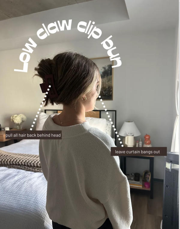 When in doubt, the claw clip bun is always a safe go-to. It’s quick, easy, and instantly makes you look put-together. This hairstyle is cozy, versatile, and can easily be dressed up by using a decorative or patterned clip. It’s perfect for everything from lounging at home to running errands or even pairing with a sleek outfit.