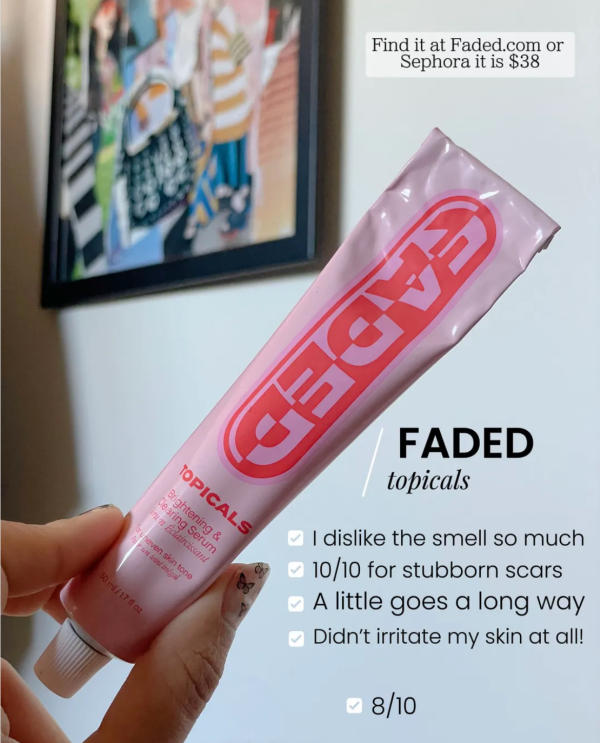 This product isn't a pure retinol, but I often use it alongside my retinol routine to help target acne scars and uneven tone. I'll be honest — the scent is quite strong and not my favorite, but the results speak for themselves. It helps clear blemishes and brighten dull areas over time. The tube also lasts a long time, which makes it a great investment for smoother, healthier-looking skin.