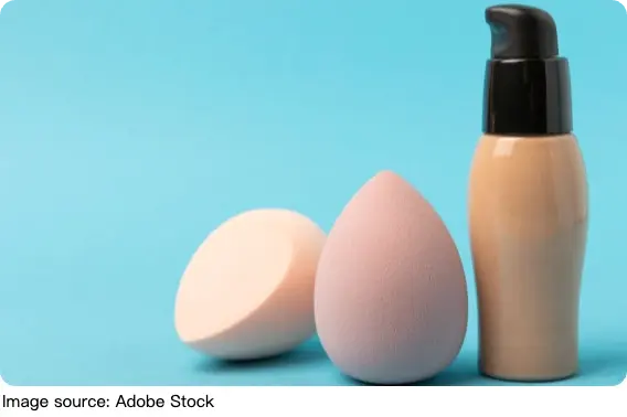 Foundation: use a rounded or teardrop-shaped sponge for even, full-coverage application.