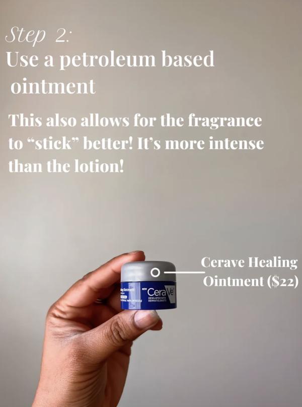 This step takes longevity to the next level. A thin layer of a petroleum-based ointment helps “lock in” the fragrance and slows down evaporation. Think of it as sealing the scent in place. It’s especially helpful for areas where perfume tends to fade quickly.