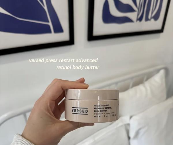 Right after stepping out of the shower, I apply the Versed Press Restart Balm all over my body, focusing especially on my legs. The balm texture feels rich without being heavy, and the added retinol helps improve firmness while locking in moisture. It leaves my skin smooth, nourished, and noticeably softer by morning.