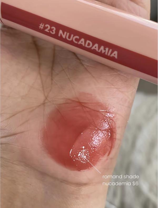 “Nucadamia” has this warm, muted tone that feels surprisingly versatile. It sits somewhere between a soft brown and a natural pink, which makes it easy to pair with almost anything. I’ve noticed it works especially well on days when I don’t want my lip color to stand out too much but still want something there. The finish leans glossy but not overly slick, giving just enough shine to keep things fresh. It’s subtle, but it leaves an impression in a way that feels effortless.