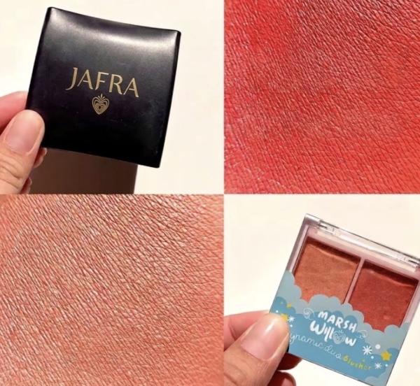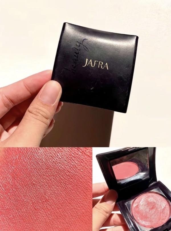 Jafra Mauve has a completely different mood. The color leans cooler and a bit deeper, which makes it feel more mature and put-together. I don’t use this every day, but when I do, it changes the whole look—suddenly everything feels a bit more intentional. I like pairing it with neutral eye makeup so the blush can stand out quietly. It’s not loud, but it has presence.